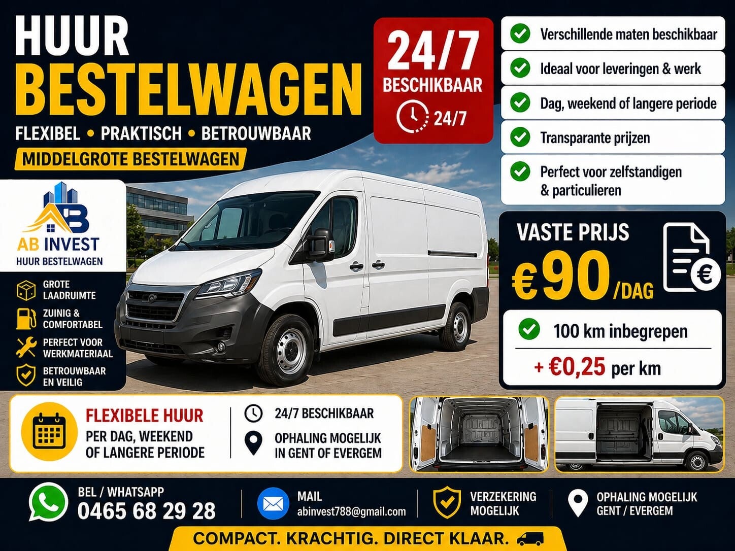 Bij AB Invest Verhuur krijgt u méér dan alleen een voertuig. Wij bieden snelle, eerlijke en betrouwbare service zonder gedoe, overal in Vlaanderen.